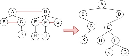 - 对每个节点,去掉除了与第一个孩子之外的其他所有连线