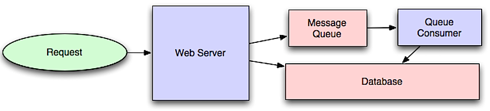 另一种就是所谓的异步任务,这种异步操作对时效性有要求,同时又消耗大量的计算资源,用户需要留在前台等待计算结果。这时候需要首先一个任务队列或者消息队列(如上图中所示)来调度异步任务。