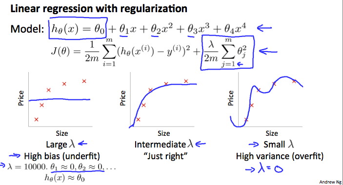 参考之前对 Regularization 的介绍,λ 的值对预测函数的影响如下图所示
