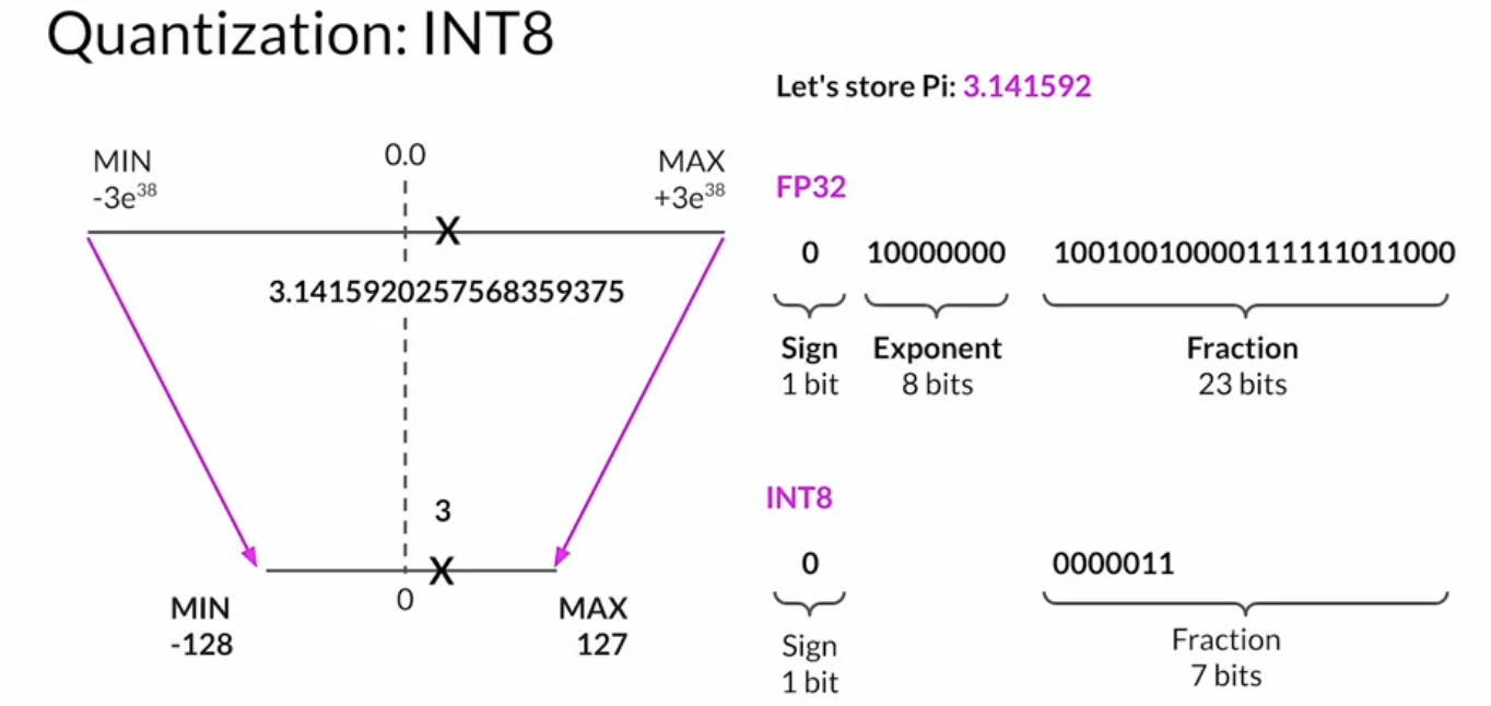 - Quantization-aware training(QAT) learns the quantizataion scaling factors during training